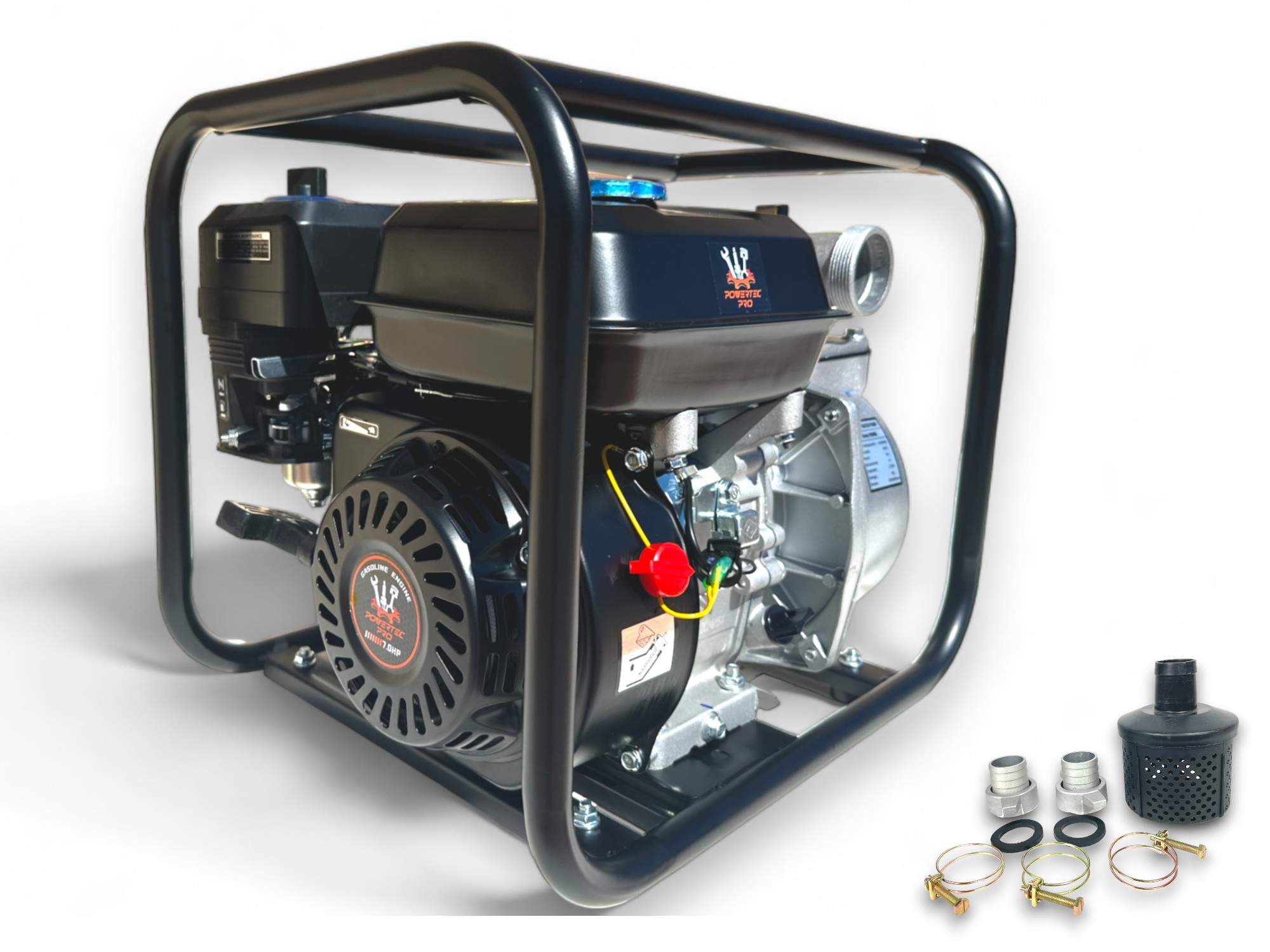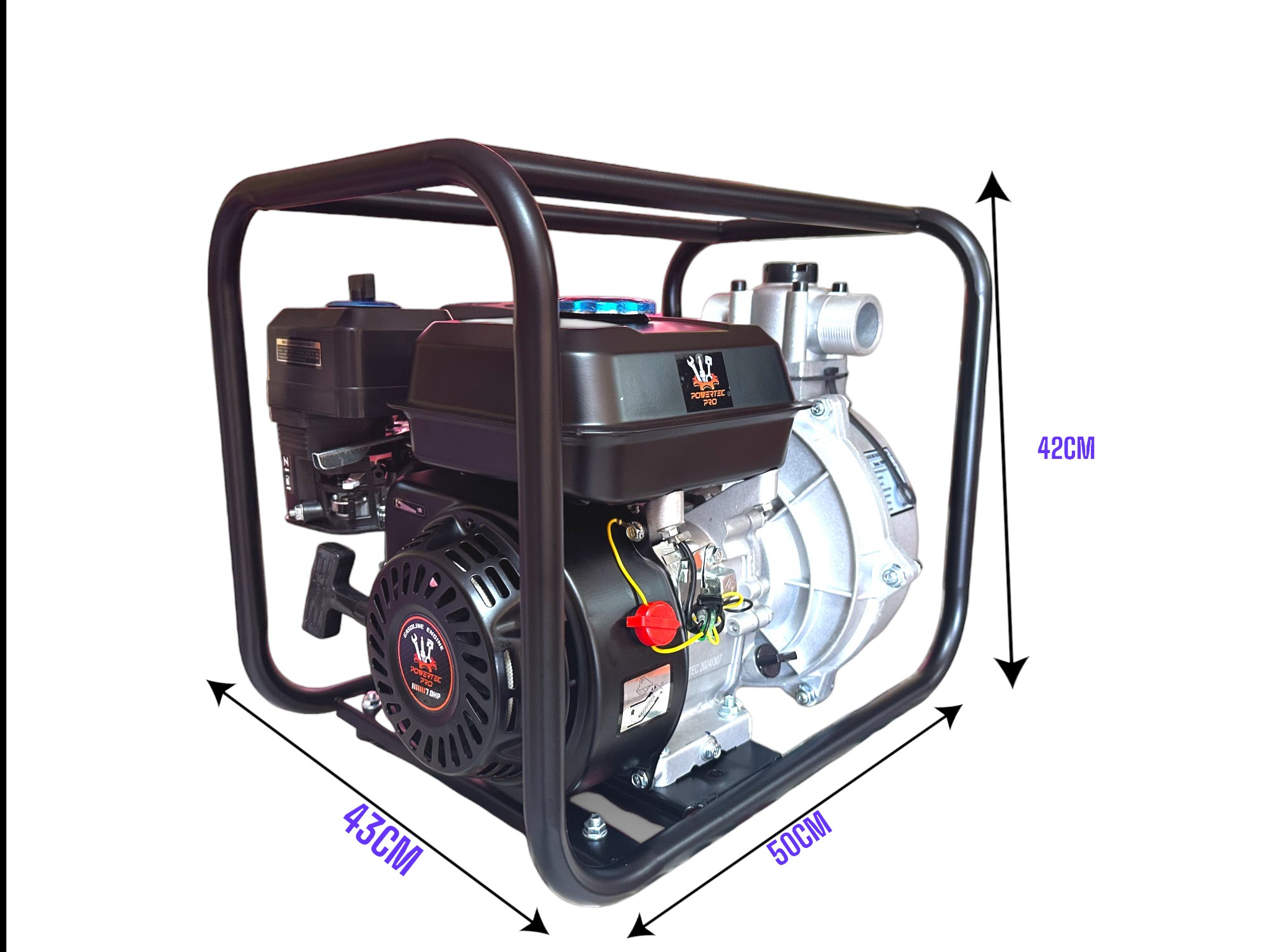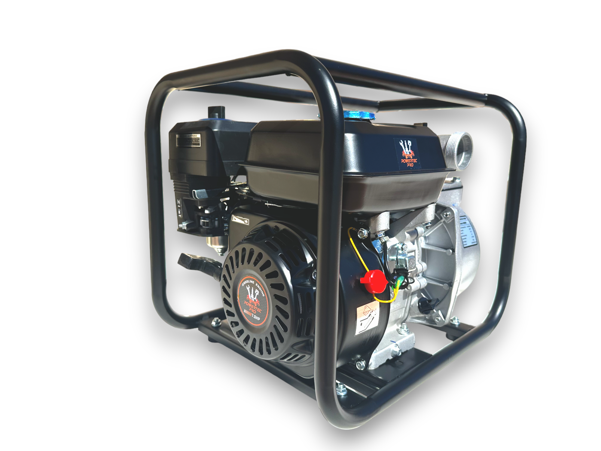 Maniobrabilidad: Gracias a los conductos en su estructura y los pies de apoyo, la motobomba PowerTEC pro es fácil de manejar y trasladar hacia donde sea necesario. Esto asegura una rápida respuesta ante las necesidades de bombeo.