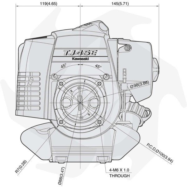 El motor Kwasaki Tj 45 E es un motor de 2 tiempos refrigerado por aire de 45,4 cc.