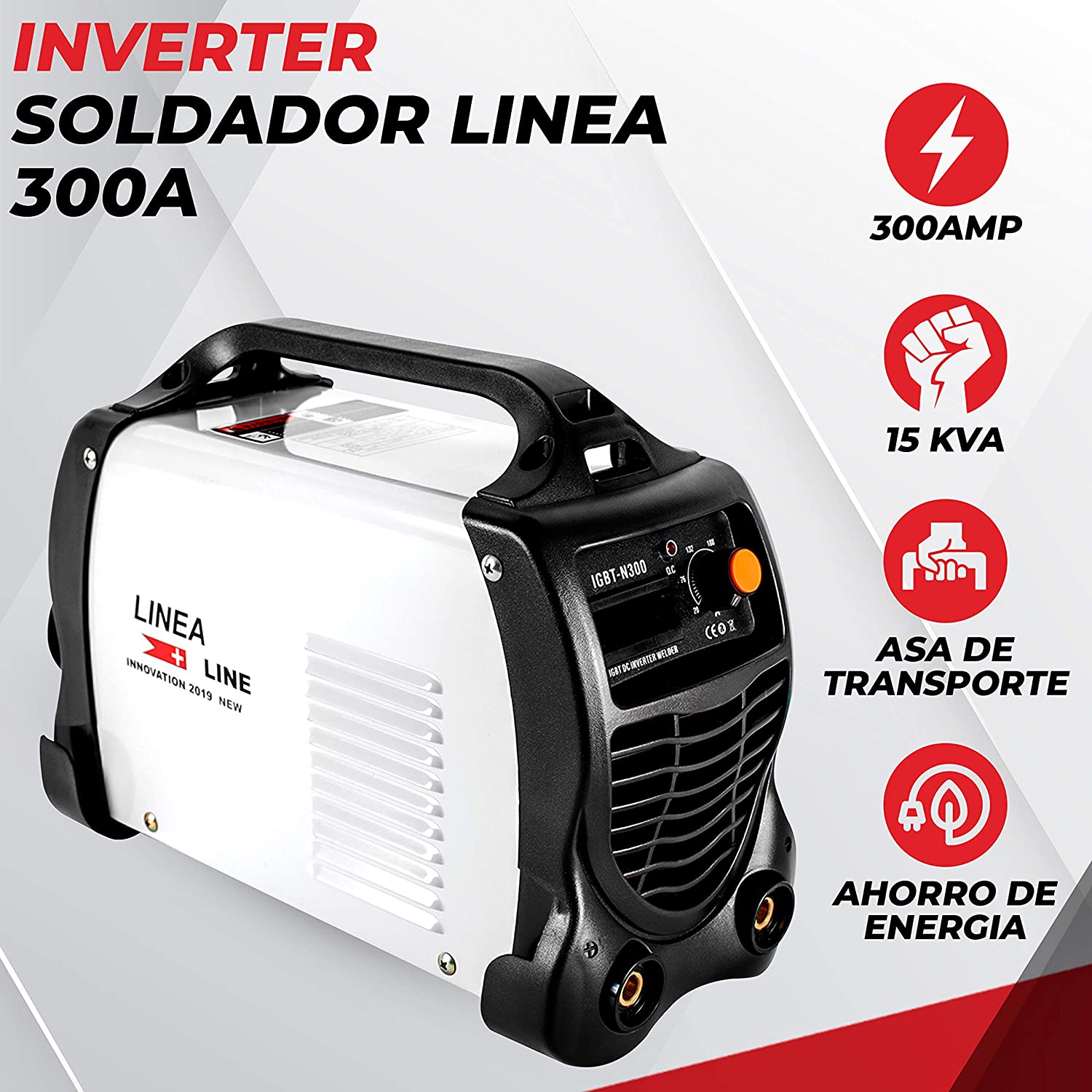 Soldador inverter de 300amp y 15 KVA de potencia.