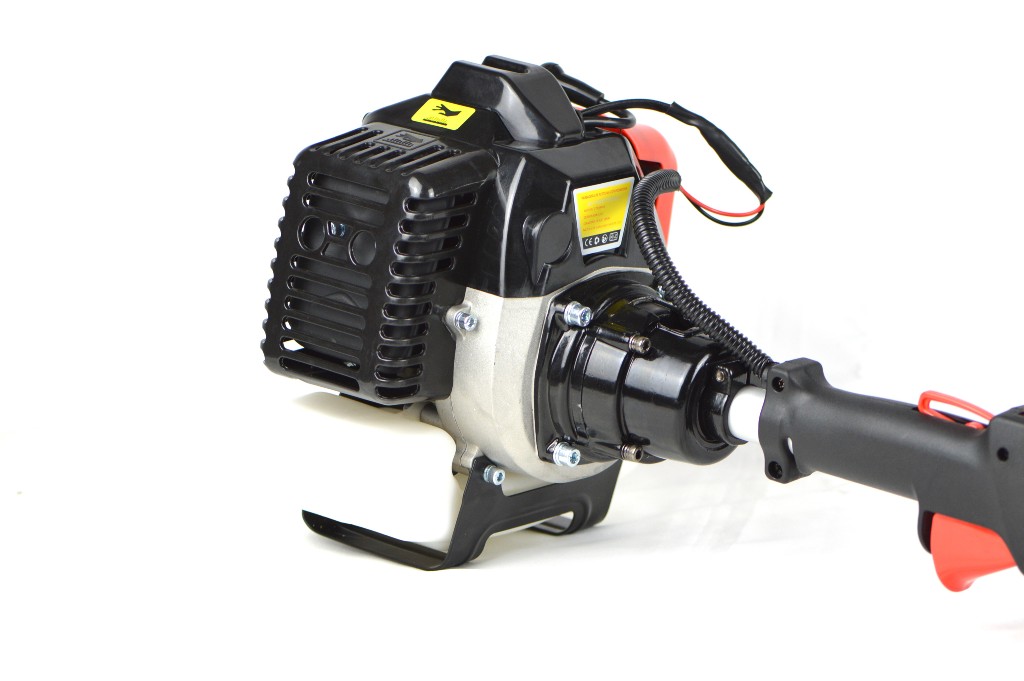 Ancho de corte hasta 43cc con hilo y 25 cm con disco. Cabezal automático tap & go dotado de salida automática de hilo u contra cuchilla para la regulación del hilo