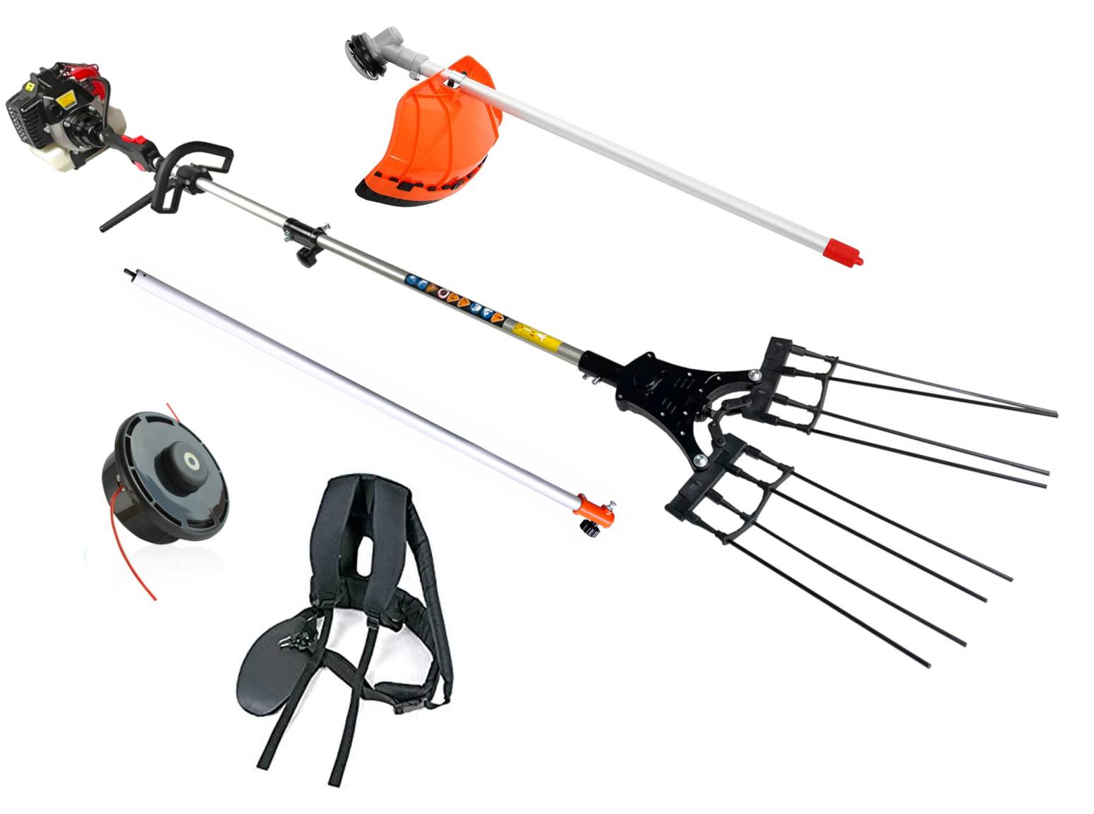 Esta desbrozadora multifunción POWERTEC PRO , motor powertec 33cc embrague reforzado, gasolina de 33cc, 1.1 hp . es ideal para realizar más funciones además del corte de desbrozadora, podadora de altura, corta seto de altura, vareadora, sustituyendo el accesorio